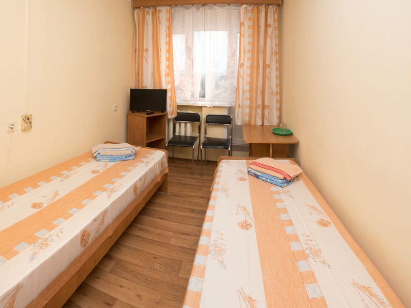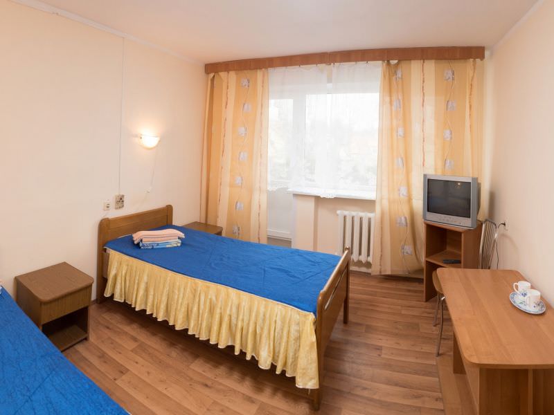 Площадь номера - 14 кв.м. 2 осн. места. 1 доп. место. Балкон. Мебель: зеркало, кровать односпальная ((2)), прикроватные тумбочки, стол, стул, шкаф. Оборудование: телевизор, чайный набор посуды. Санузел: с душем, туалетные принадлежности. Сервис: смена полотенец, смена постельного белья, уборка номера.